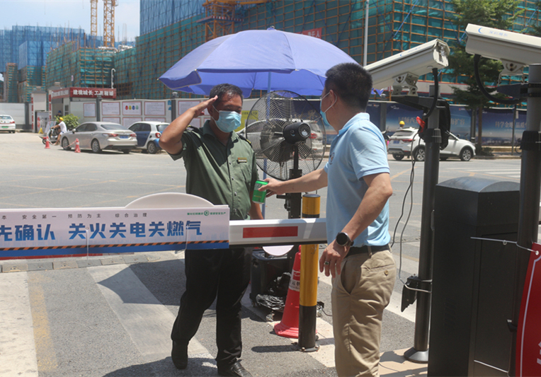 咬定青山不放松,立根原在破巖中。 千磨萬擊還堅勁,任爾東西南北風。 ——清代鄭燮的《竹石》 炎炎酷暑,疫情再起,鴻運物業保安員們站出崗亭,頂著高溫驗碼排查,用“咬定青山不放松”的精神,堅決踐行防疫措施;用“千磨萬擊還堅勁”的定力,堅守小區“安全門”。7月26日上午,鴻運物業總經理陳喜祥、黨支部書記陳文遠,同高層代表、黨員代表,前往鴻運物業服務的小區,慰問一線保安員們。總經理陳喜祥為保安員們送上飲料,一聲聲“辛苦了”道出對保安員工作的肯定和感謝。陳總要求各物業服務中心備齊解暑應急藥品,定期開展“送清涼”活動,讓員工在辛勤的工作中感受到公司的關懷。鴻運物業黨支部書記陳文遠與保安員握手交談,叮囑其多喝水、注意防暑,并切身感受其工作環境,和黨員代表們一同提出改良建議。在麒麟花園,我們遇到了黨員志愿者,陳文遠書記對黨員志愿者的支持表示感謝。在人流量較大的沙頭舊村卡口,我們見到了保安員耐心指引無法打開健康碼的居民,保證卡口暢通不擁堵;在鴻德園卡口,我們見到了保安員為沒有佩戴口罩的老人送上口罩;在盛芳園卡口,我們見到了保安員耐心與外賣員溝通,為其解釋新下達的外賣員快遞員不能進入小區的規定;在麒麟花園卡口,我們見到了保安員奔跑到烈日下,細致查驗車中人員的健康碼……因部分物業服務中心需協助處理居民核酸采樣,為不影響正常工作,未能一一前往慰問,在此向全體鴻運人道一聲“辛苦了”!